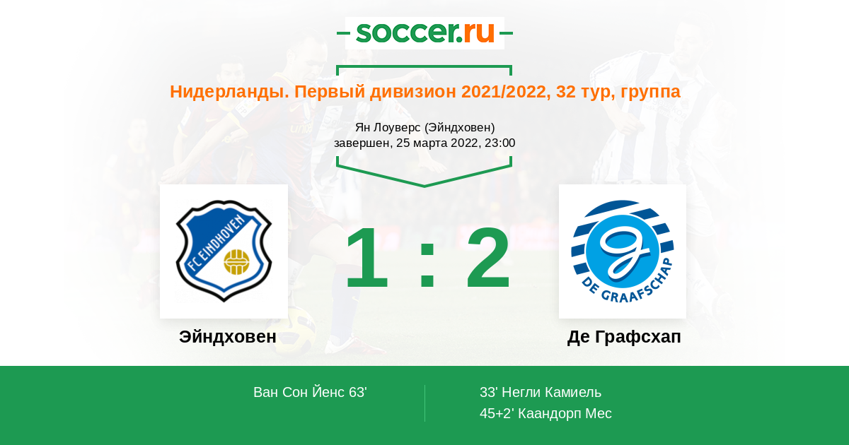 Нидерланды. Первый дивизион 27.02.2015 Де Графсхап Логотип футбольный клуб Де Графсхап (Дутинхем) 1:0 Логотип футбольный клуб Эйндховен Эйндховен