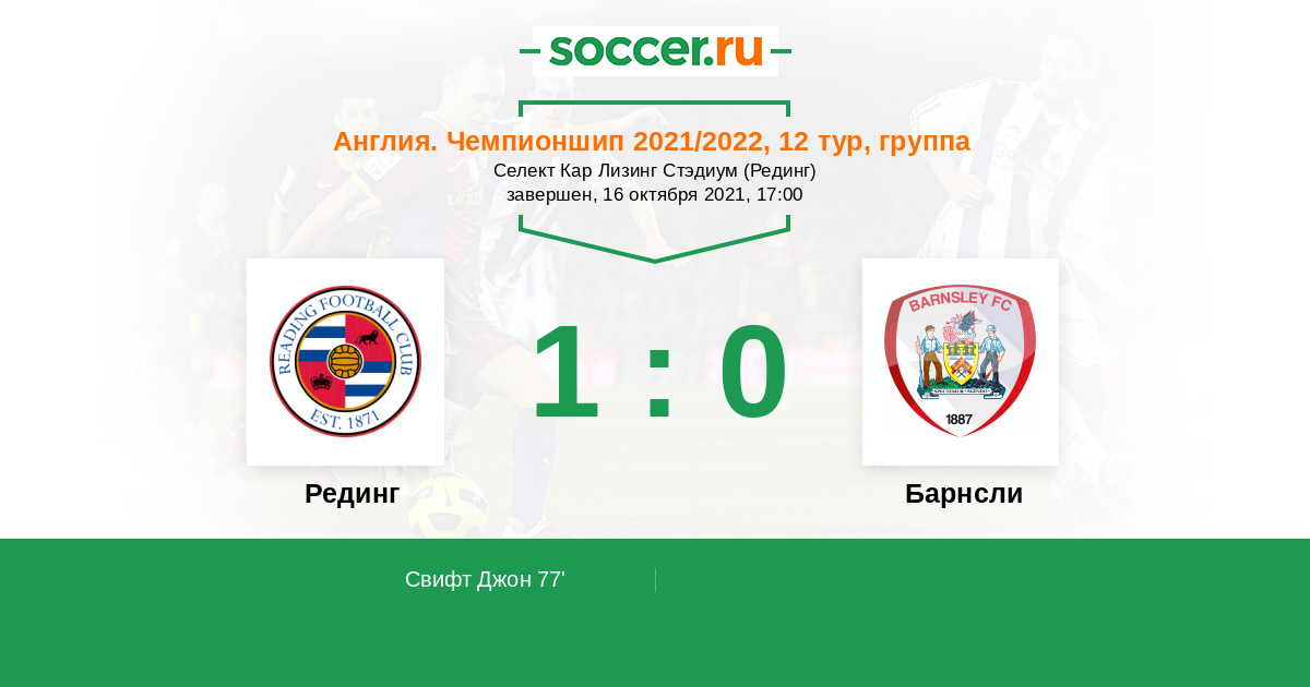 Англия. Чемпионшип 17.09.2016 Барнсли Логотип футбольный клуб Барнсли 1:2 Логотип футбольный клуб Рединг Рединг