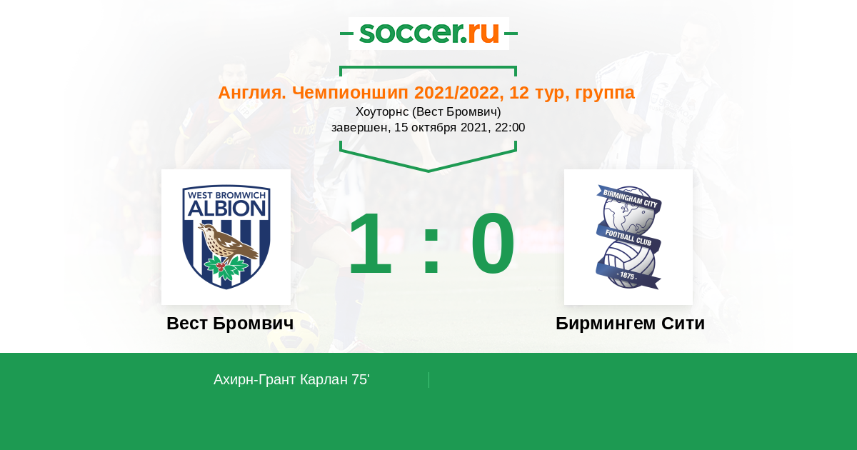 Англия. Чемпионшип 03.04.2022 Бирмингем Сити Логотип футбольный клуб Бирмингем Сити 1:0 Логотип футбольный клуб Вест Бромвич Вест Бромвич