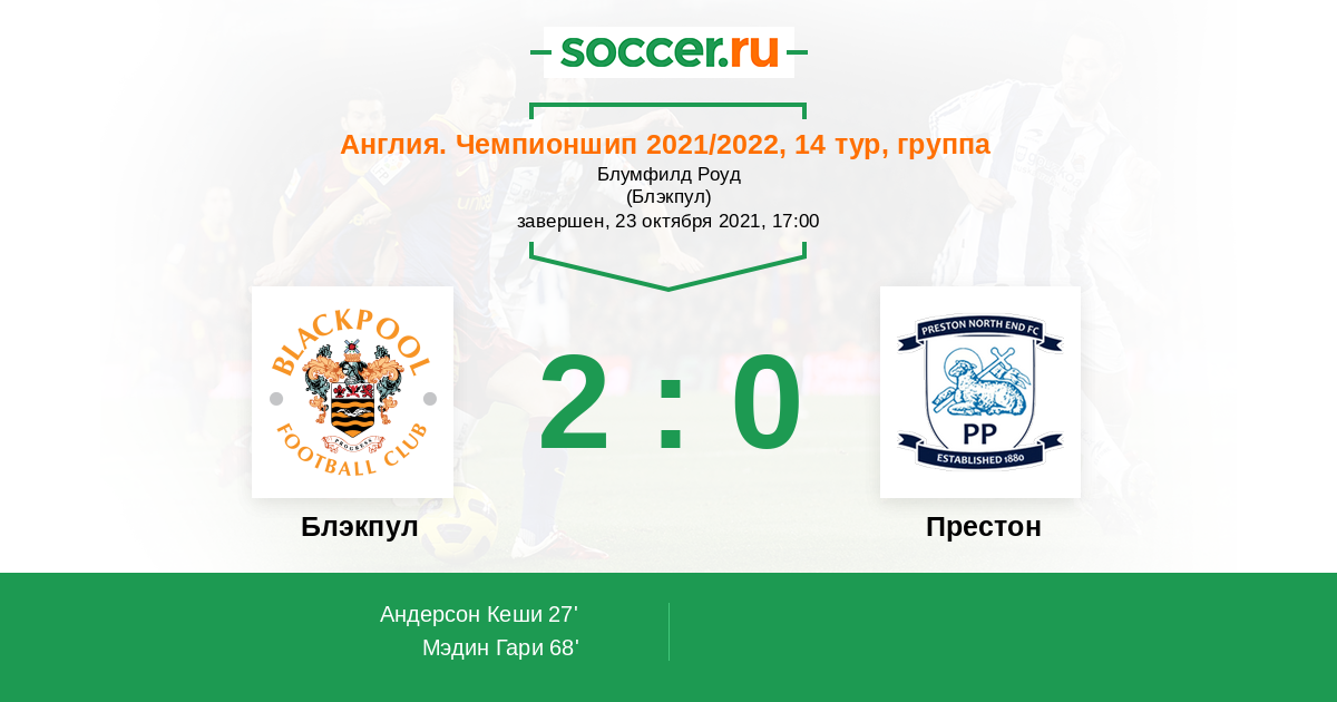 Англия. Чемпионшип 22.10.2022 Блэкпул Логотип футбольный клуб Блэкпул 4:2 Логотип футбольный клуб Престон Престон