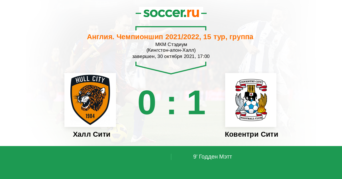 Англия. Чемпионшип 16.03.2022 Ковентри Сити Логотип футбольный клуб Ковентри Сити 0:2 Логотип футбольный клуб Халл Сити (Кингстон-апон-Халл) Халл Сити