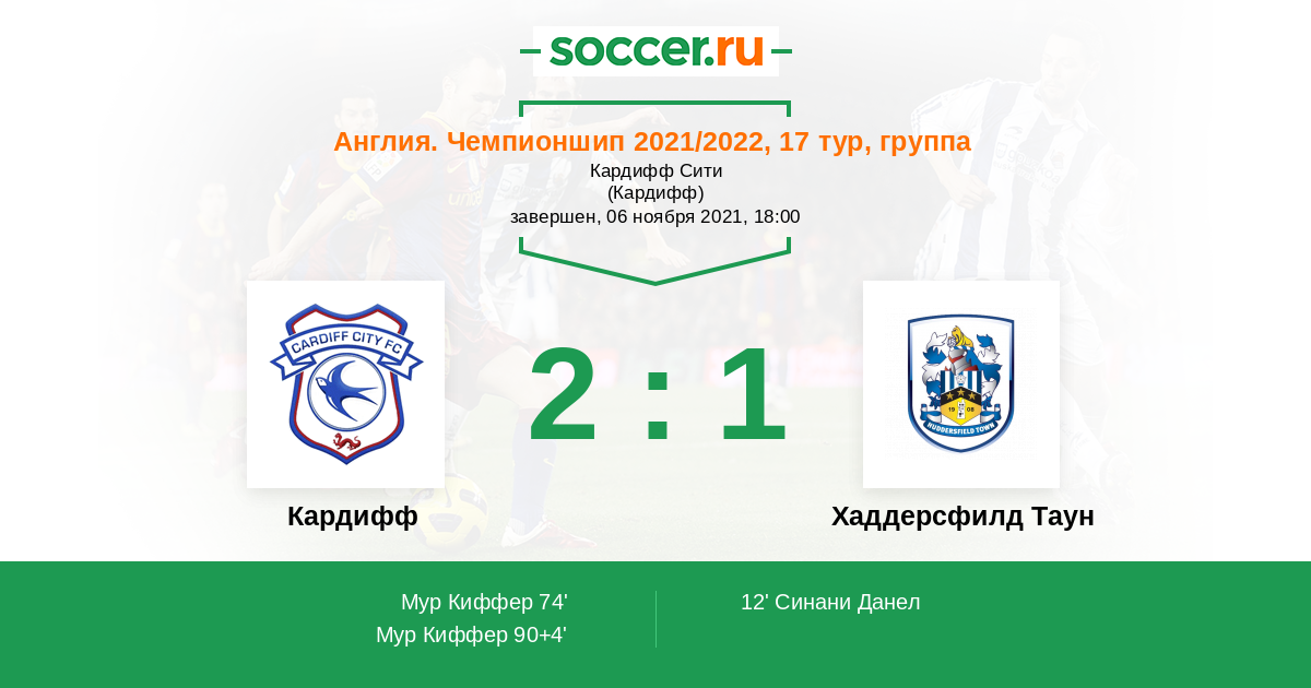 Англия. Чемпионшип 23.02.2022 Хаддерсфилд Таун Логотип футбольный клуб Хаддерсфилд Таун 2:1 Логотип футбольный клуб Кардифф Кардифф