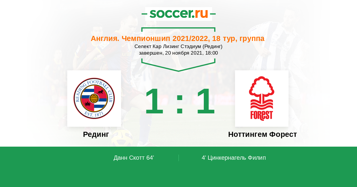 Англия. Чемпионшип 20.02.2018 Ноттингем Форест Логотип футбольный клуб Ноттингем Форест 1:1 Логотип футбольный клуб Рединг Рединг