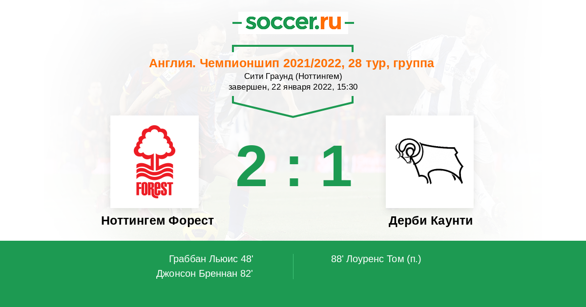 Англия. Чемпионшип 25.02.2019 Ноттингем Форест Логотип футбольный клуб Ноттингем Форест 1:0 Логотип футбольный клуб Дерби Каунти Дерби Каунти