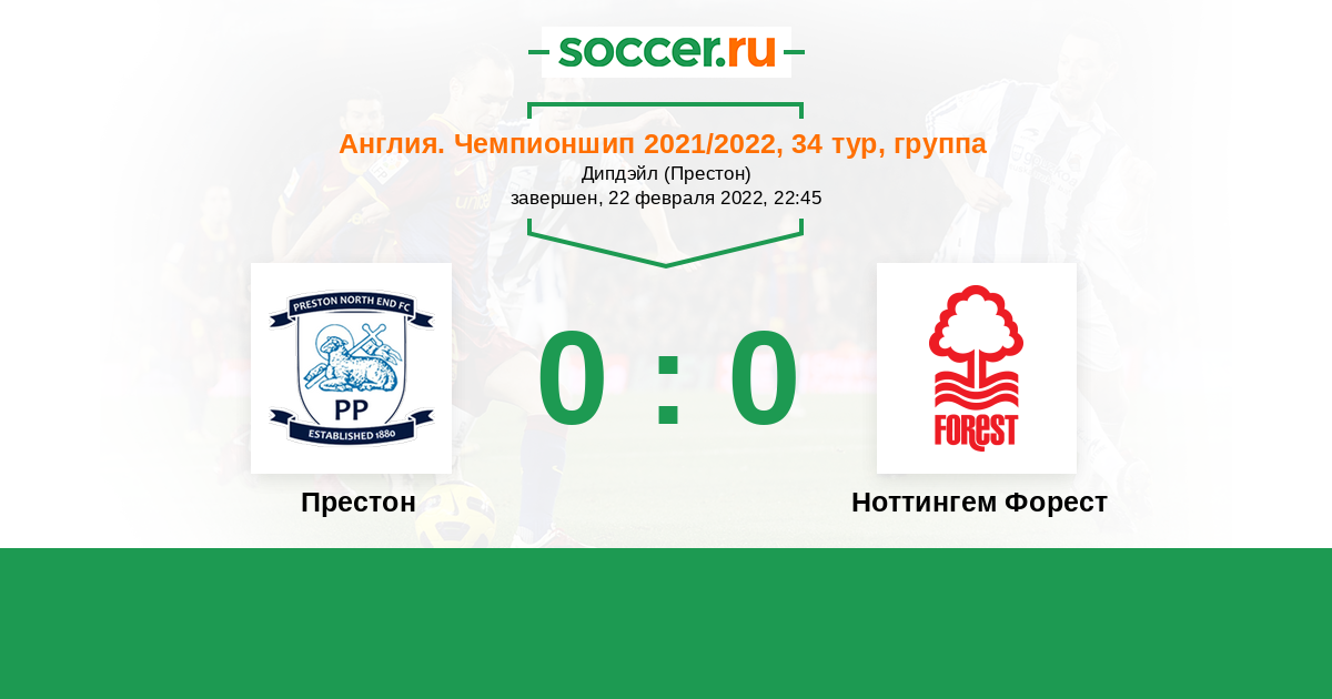 Англия. Чемпионшип 16.02.2019 Престон Логотип футбольный клуб Престон 0:0 Логотип футбольный клуб Ноттингем Форест Ноттингем Форест