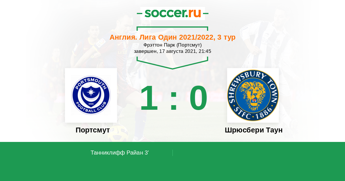 Англия. Первая Футбольная Лига 12.09.2020 Портсмут Логотип футбольный клуб Портсмут 0:0 Логотип футбольный клуб Шрюсбери Таун Шрюсбери Таун