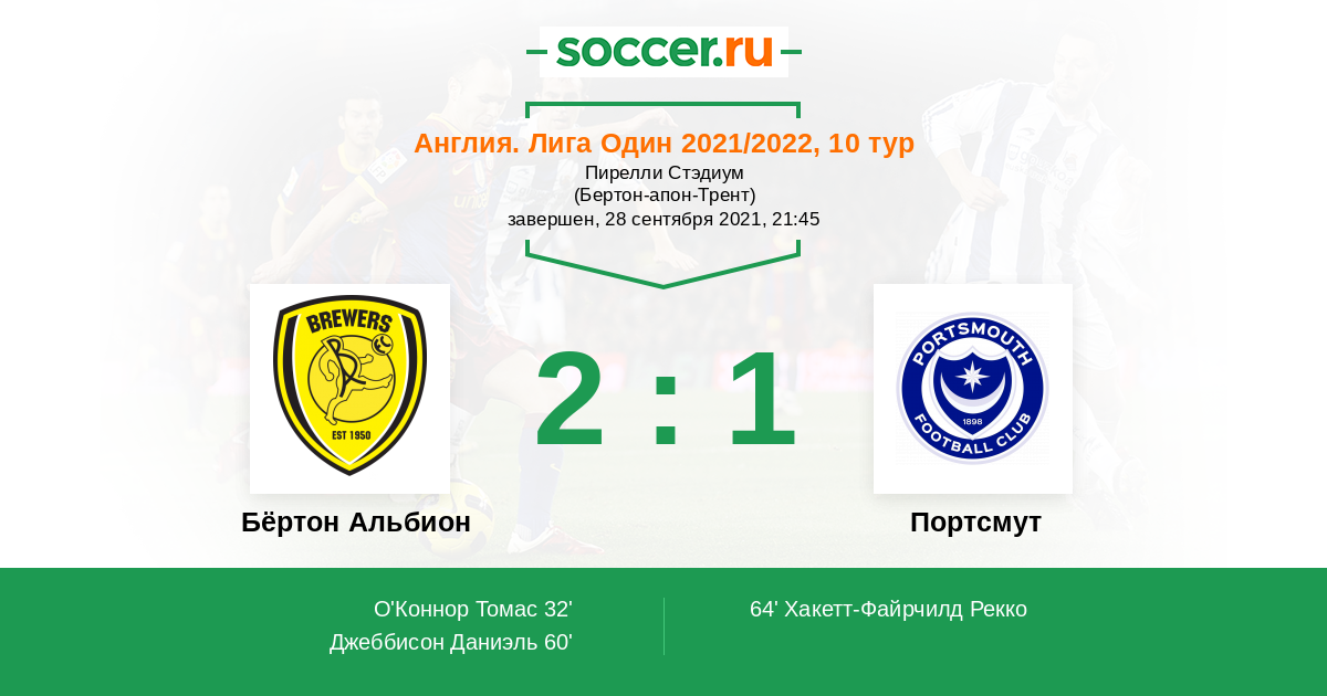 Англия. Первая Футбольная Лига 08.02.2022 Портсмут Логотип футбольный клуб Портсмут 2:1 Логотип футбольный клуб Бёртон Альбион (Бёртон-апон-Трент) Бёртон Альбион