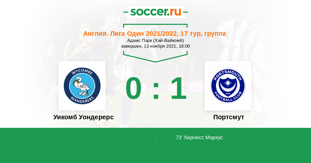 Англия. Первая Футбольная Лига 19.03.2022 Портсмут Логотип футбольный клуб Портсмут 0:0 Логотип футбольный клуб Уикомб Уондерерс (Хай-Вайкомб) Уикомб Уондерерс