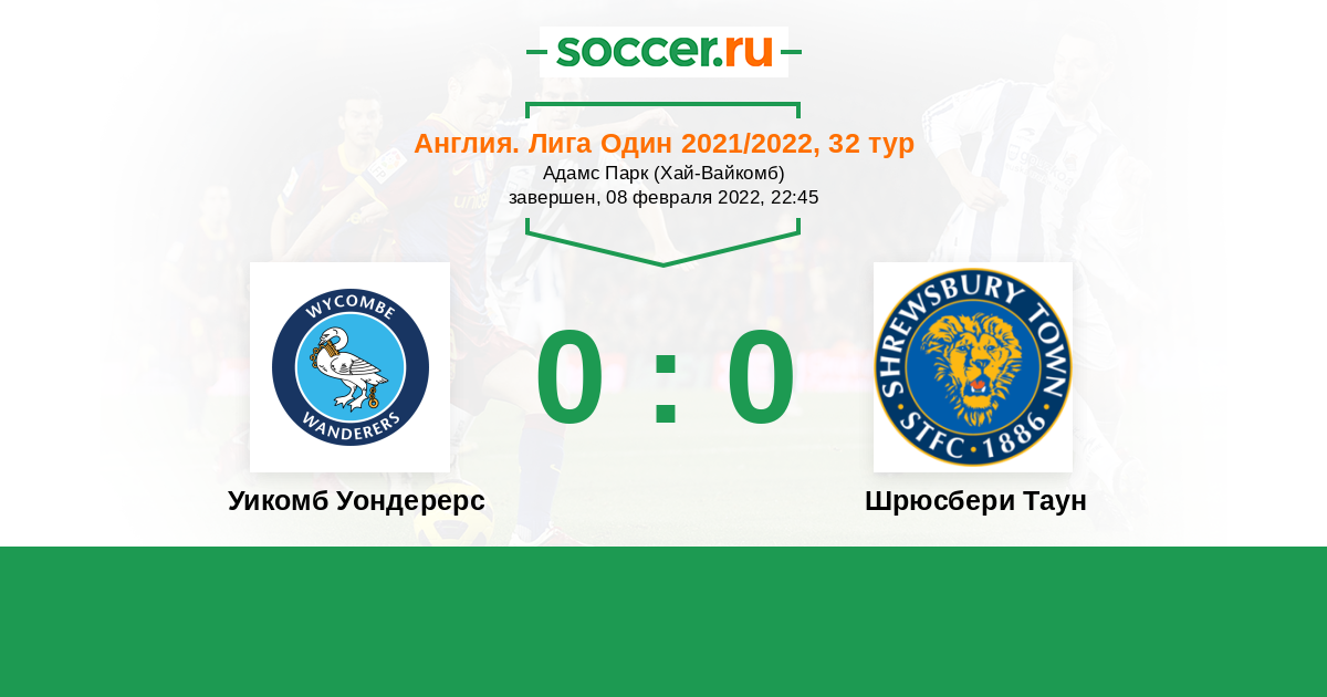 Англия. Первая Футбольная Лига 25.02.2023 Шрюсбери Таун Логотип футбольный клуб Шрюсбери Таун 2:0 Логотип футбольный клуб Уикомб Уондерерс (Хай-Вайкомб) Уикомб Уондерерс