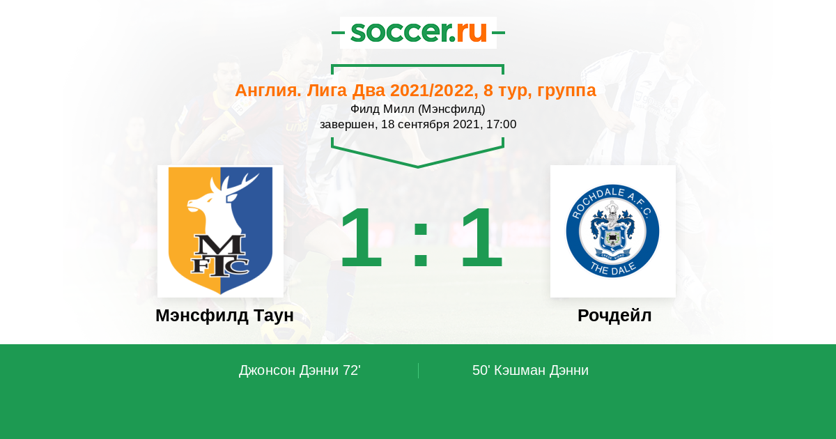 Англия. Вторая Футбольная Лига 22.03.2022 Рочдейл Логотип футбольный клуб Рочдейл 0:1 Логотип футбольный клуб Мэнсфилд Таун Мэнсфилд Таун