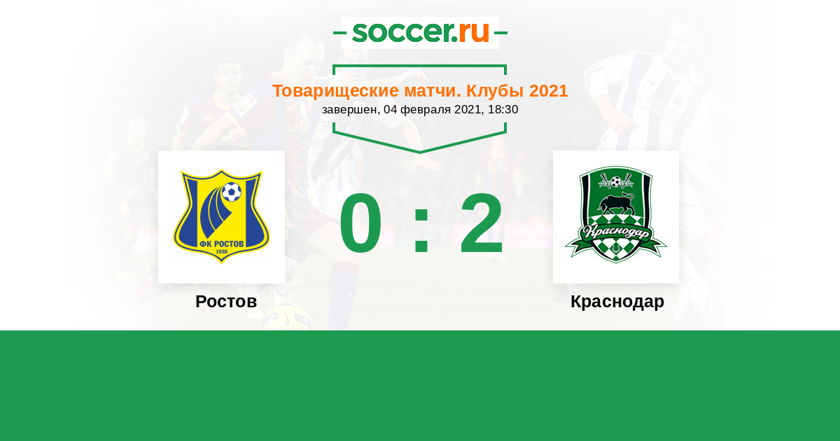 Товарищеские матчи. Клубы 23.02.2020 Краснодар Логотип футбольный клуб Краснодар 0:1 Логотип футбольный клуб Ростов (Ростов-на-Дону) Ростов
