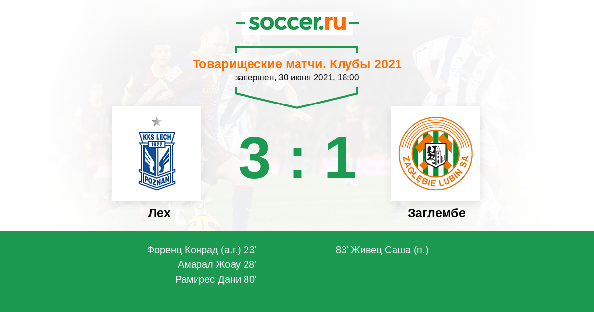 Товарищеские матчи. Клубы 02.07.2016 Лех Логотип футбольный клуб Лех (Познань) 3:0 Логотип футбольный клуб Заглембе (Любина) Заглембе