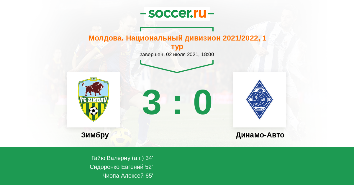 Молдова. Национальный дивизион 08.07.2017 Динамо-Авто Логотип футбольный клуб Динамо-Авто (Тирасполь) 1:0 Логотип футбольный клуб Зимбру (Кишинев) Зимбру