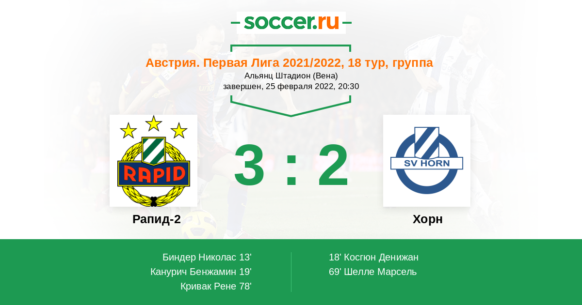 Австрия. Первая Лига 18.04.2021 Рапид-2 Логотип футбольный клуб Рапид-2 (Вена) 1:0 Логотип футбольный клуб Хорн Хорн