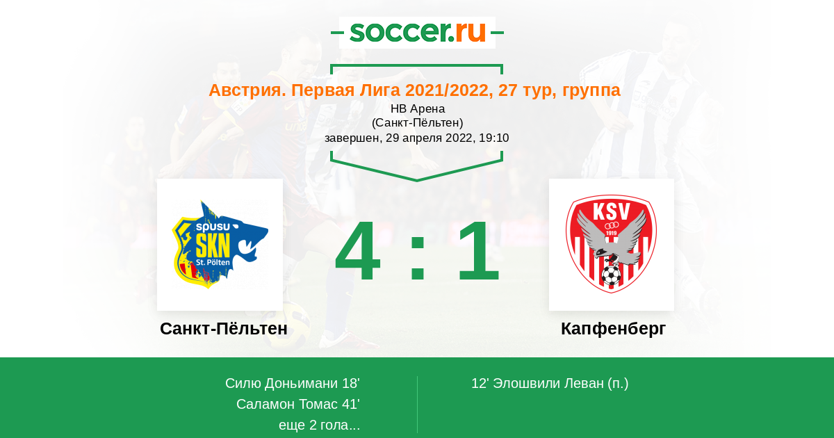 Австрия. Первая Лига 24.10.2021 Капфенберг Логотип футбольный клуб Капфенберг 2:0 Логотип футбольный клуб Санкт-Пёльтен (Санкт-Пельтен) Санкт-Пёльтен