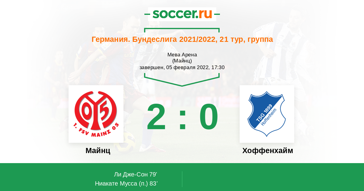 Германия. Бундеслига 21.03.2021 Хоффенхайм Логотип футбольный клуб Хоффенхайм (Зинсхайм) 1:2 Логотип футбольный клуб Майнц Майнц