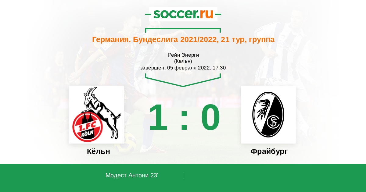 Германия. Бундеслига 09.01.2021 Фрайбург Логотип футбольный клуб Фрайбург 5:0 Логотип футбольный клуб Кёльн Кёльн