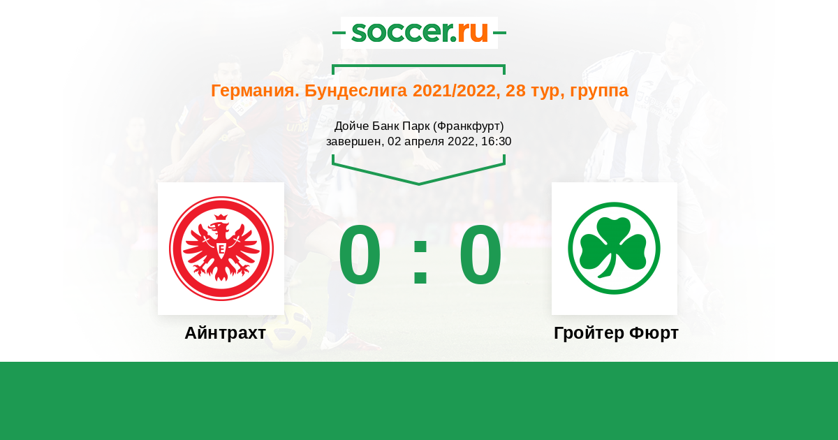 «Айнтрахт» пока не справляется со своей задачей на сезон, но все еще имеет возможность пробиться в зону еврокубков. Права на ошибку в матче с главным аутсайдером чемпионата у «орлов» нет и сегодня они играть будут только на победу – вряд ли «Гройтер Фюрт» сумеет остановить хозяев, силы на сегодняшний день не равны.