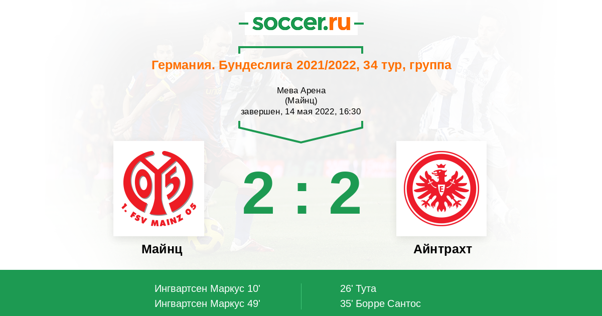 Германия. Бундеслига 09.05.2021 Айнтрахт Логотип футбольный клуб Айнтрахт (Франкфурт) 1:1 Логотип футбольный клуб Майнц Майнц