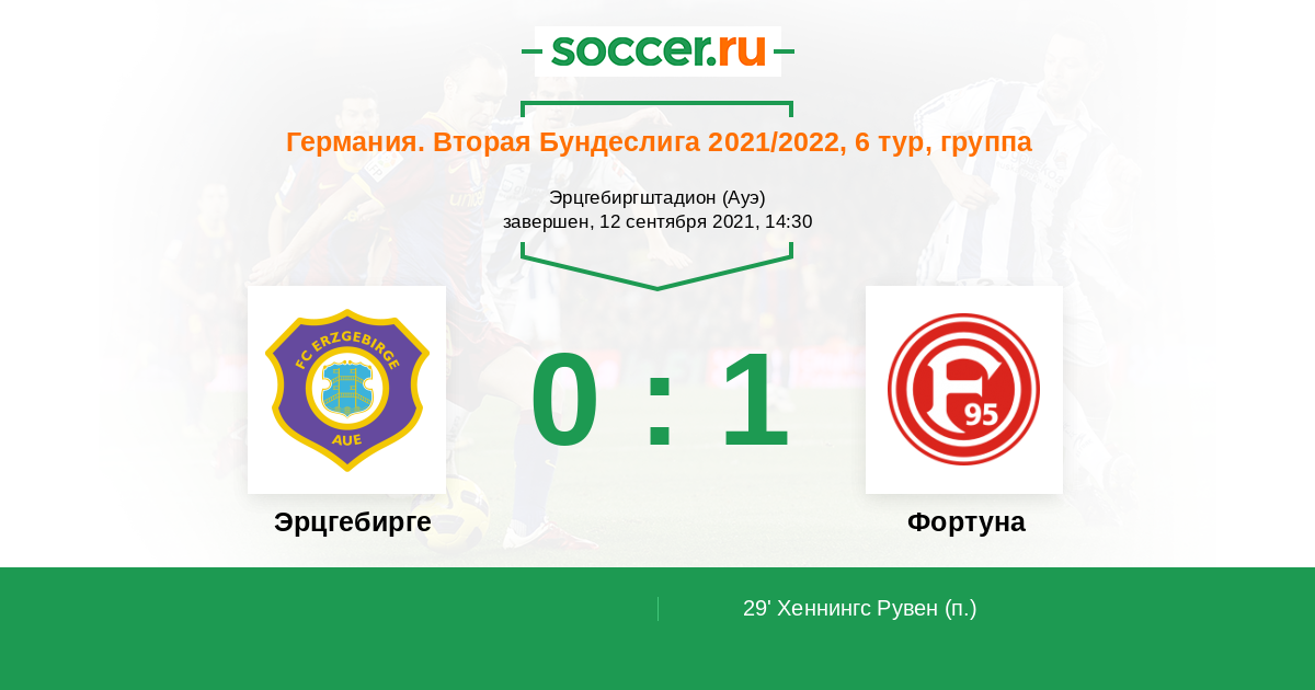 Германия. Бундеслига 2 16.09.2011 Эрцгебирге Логотип футбольный клуб Эрцгебирге (Ауэ) 2:4 Логотип футбольный клуб Фортуна (Дюссельдорф) Фортуна