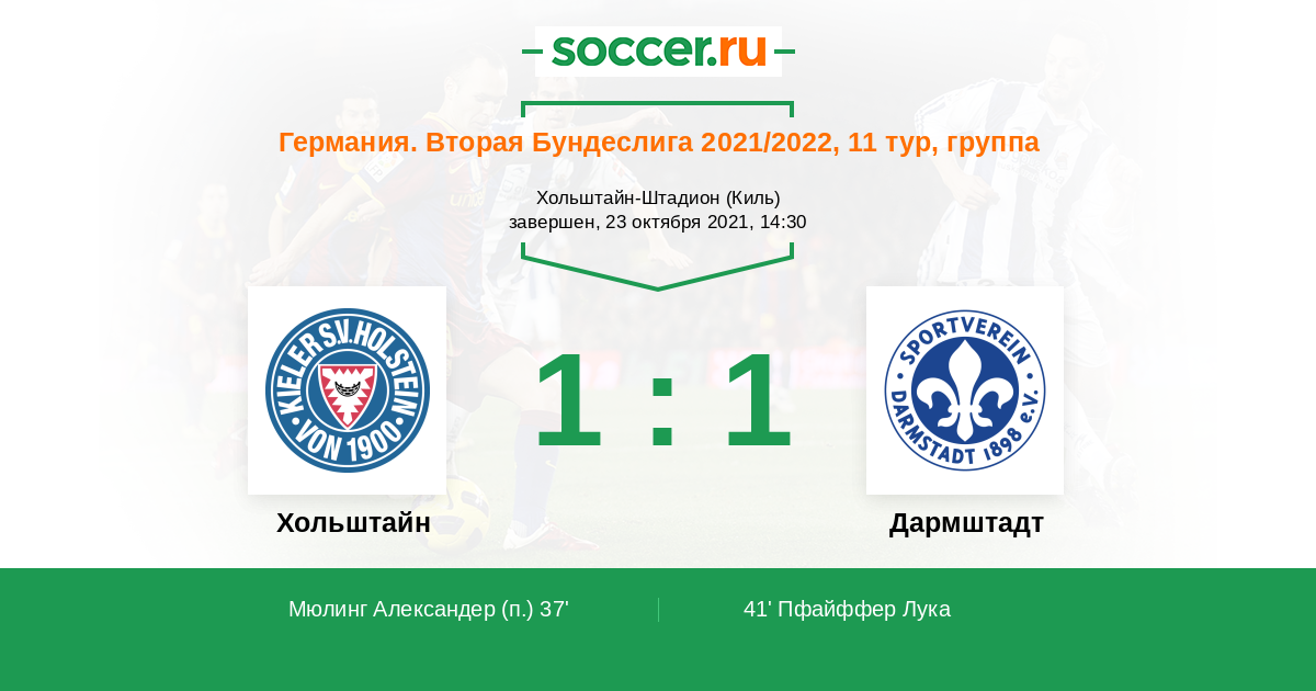 Германия. Бундеслига 2 21.10.2022 Дармштадт Логотип футбольный клуб Дармштадт 1:1 Логотип футбольный клуб Хольштайн (Киль) Хольштайн