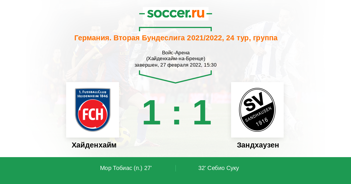 Германия. Третья лига 12.02.2011 Зандхаузен Логотип футбольный клуб Зандхаузен 1:2 Логотип футбольный клуб Хайденхайм (Хайденхайм-на-Бренце) Хайденхайм