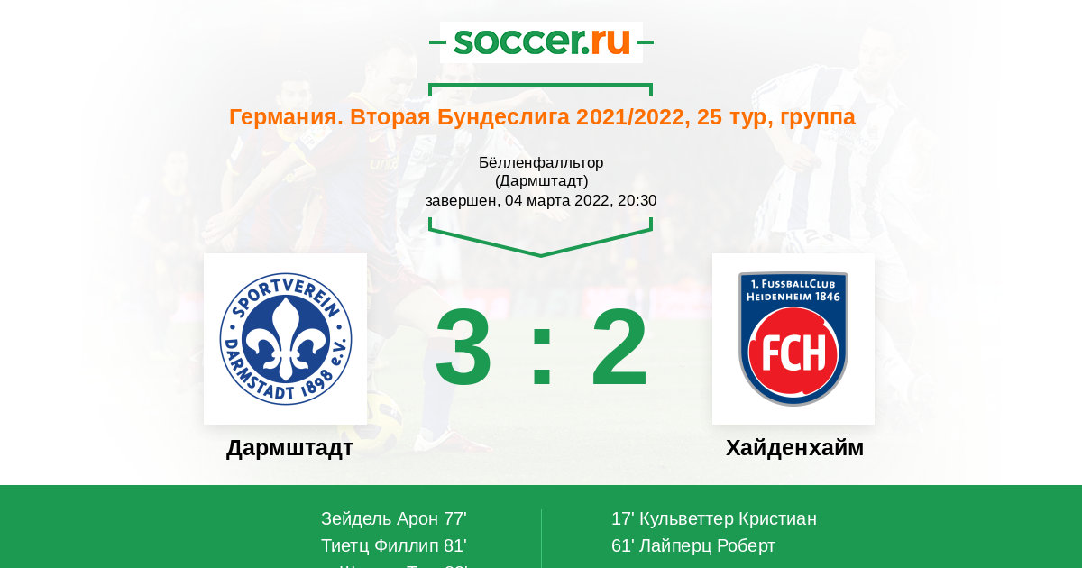 Германия. Бундеслига 2 04.03.2023 Хайденхайм Логотип футбольный клуб Хайденхайм (Хайденхайм-на-Бренце) 1:0 Логотип футбольный клуб Дармштадт Дармштадт