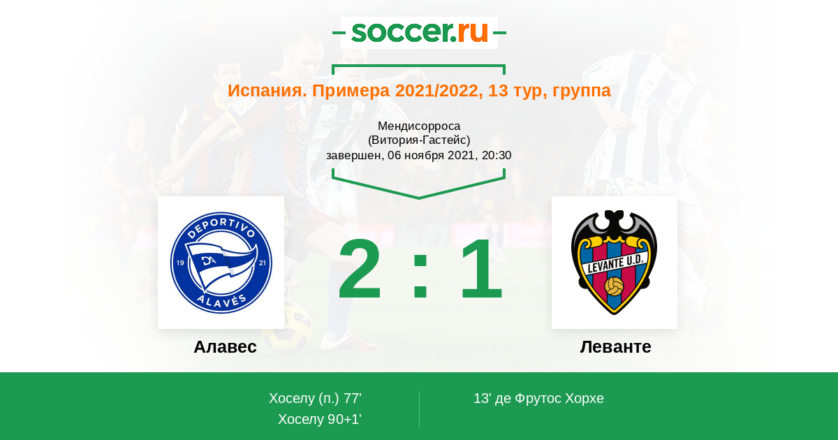 Испания. Примера 08.11.2020 Леванте Логотип футбольный клуб Леванте (Валенсия) 1:1 Логотип футбольный клуб Алавес (Витория-Гастейс) Алавес