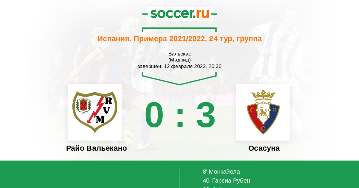 Испания. Примера 24.01.2026 Райо Вальекано Логотип футбольный клуб Райо Вальекано (Мадрид) 1:3 Логотип футбольный клуб Осасуна (Памплона) Осасуна