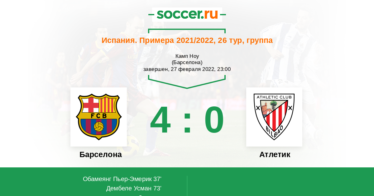 Испания. Примера 23.10.2022 Барселона Логотип футбольный клуб Барселона 4:0 Логотип футбольный клуб Атлетик (Бильбао) Атлетик