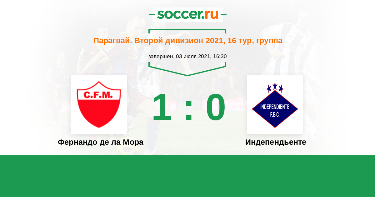 Парагвай. Второй дивизион 16.10.2021 Индепендьенте Логотип футбольный клуб Индепендьенте (Луке) 2:1 Логотип футбольный клуб Фернандо де ла Мора Фернандо де ла Мора