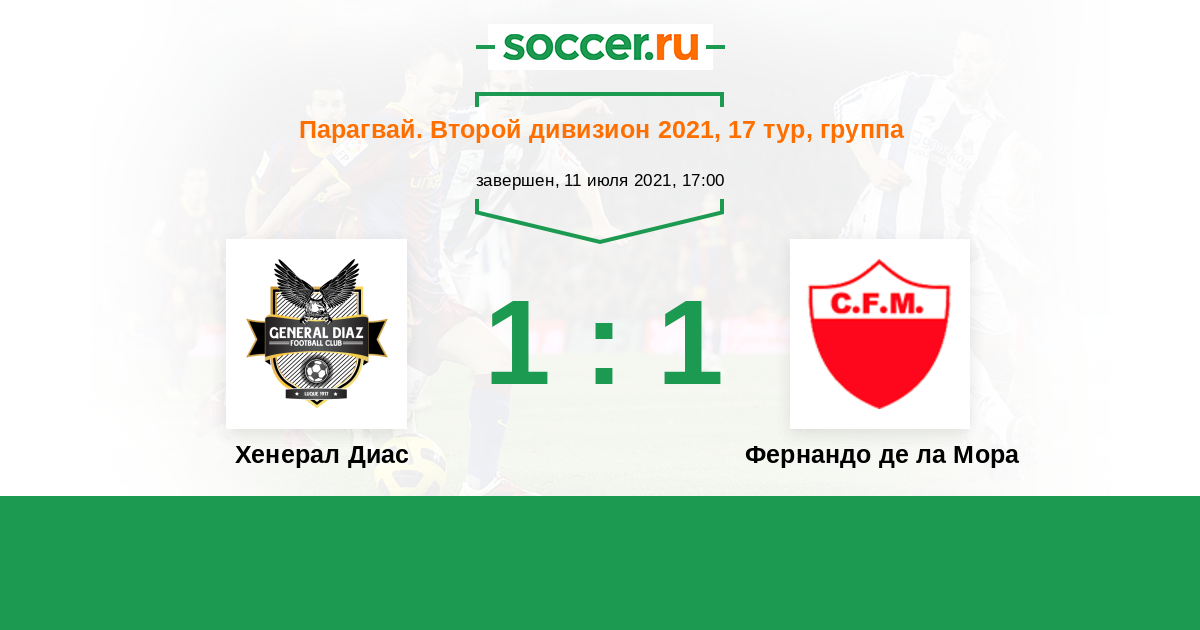 Парагвай. Второй дивизион 20.10.2021 Фернандо де ла Мора Логотип футбольный клуб Фернандо де ла Мора 2:0 Логотип футбольный клуб Хенерал Диас (Луке) Хенерал Диас