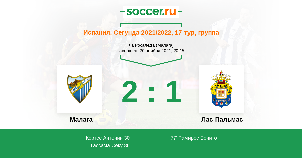 Испания. Примера 20.02.2017 Малага Логотип футбольный клуб Малага 2:1 Логотип футбольный клуб Лас-Пальмас Лас-Пальмас