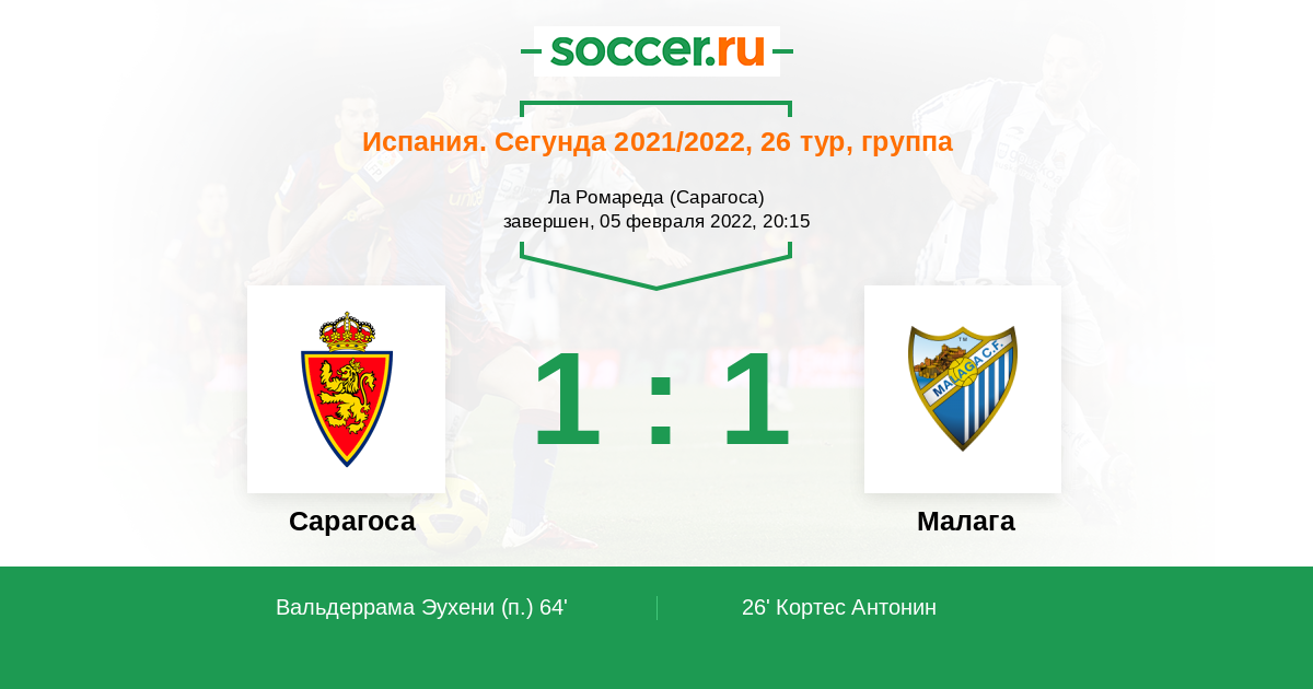 Испания. Сегунда 07.02.2021 Малага Логотип футбольный клуб Малага 1:2 Логотип футбольный клуб Сарагоса Сарагоса