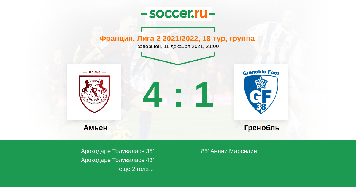 Франция. Лига 2 07.12.2024 Гренобль Логотип футбольный клуб Гренобль 0:2 Логотип футбольный клуб Амьен Амьен