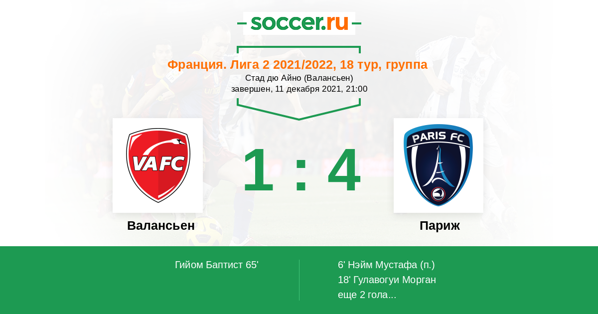 Франция. Лига 2 16.03.2018 Валансьен Логотип футбольный клуб Валансьен 2:4 Логотип футбольный клуб Париж Париж