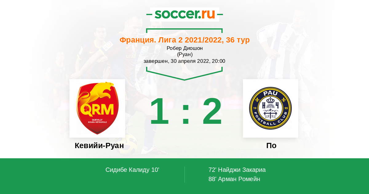 Франция. Лига 2 27.08.2022 Кевийи-Руан Логотип футбольный клуб Кевийи-Руан (Ля-Пети-Кевийи) 2:1 Логотип футбольный клуб По (Бизано) По
