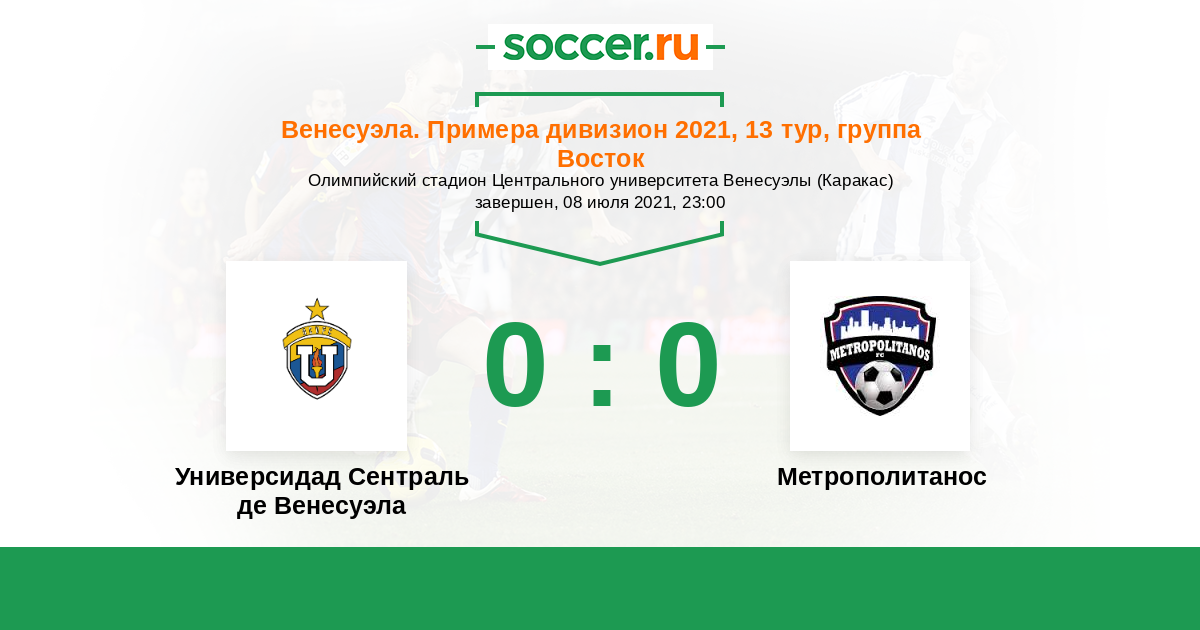 Венесуэла. Примера дивизион 30.08.2021 Метрополитанос Логотип футбольный клуб Метрополитанос (Лос-Текес) 1:1 Логотип футбольный клуб УСВ (Каракас) УСВ