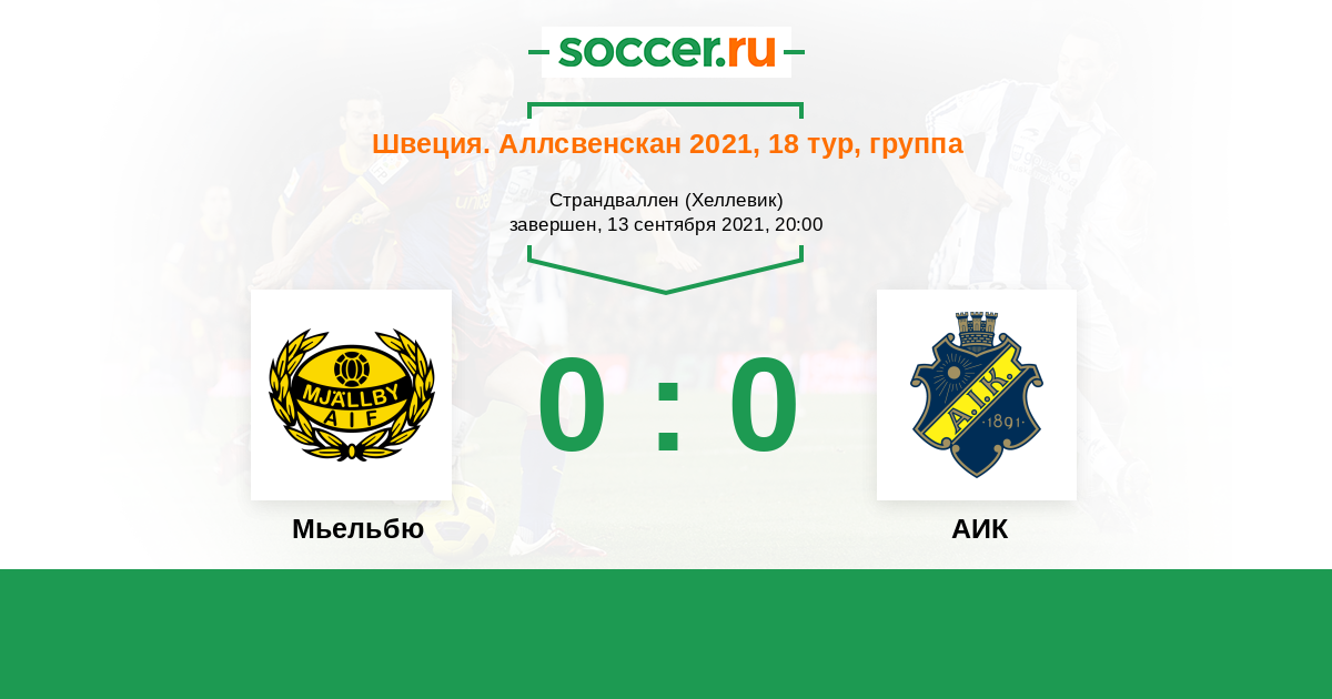 Швеция. Аллсвенскан 28.09.2020 АИК Логотип футбольный клуб АИК (Стокгольм) 1:0 Логотип футбольный клуб Мьельбю (Сельвесборг) Мьельбю