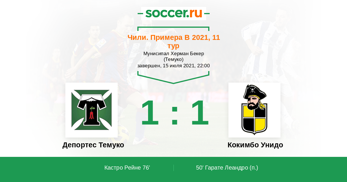 Чили. Примера В 18.10.2015 Депортес Темуко Логотип футбольный клуб Депортес Темуко 4:2 Логотип футбольный клуб Кокимбо Унидо Кокимбо Унидо