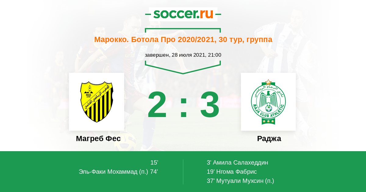 Марокко. Ботола Про 11.05.2021 Раджа Логотип футбольный клуб Раджа (Касабланка) 1:0 Логотип футбольный клуб Магреб Фес Магреб Фес