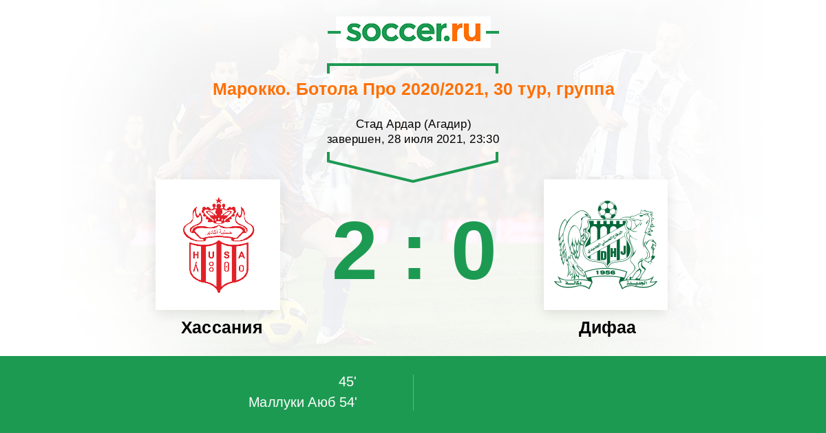 Марокко. Ботола Про 18.09.2021 Дифаа Логотип футбольный клуб Дифаа (Эль-Жадида) 2:1 Логотип футбольный клуб Хассания (Агадир) Хассания