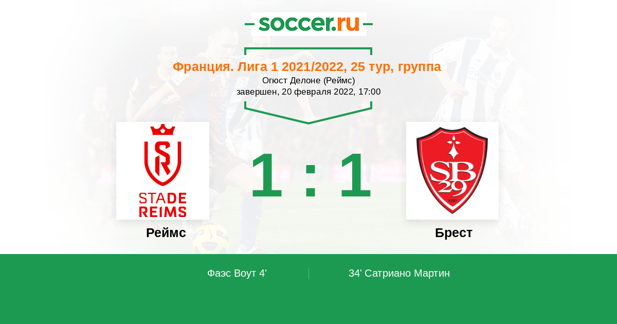 Франция. Лига 1 17.10.2021 Брест Логотип футбольный клуб Брест 1:1 Логотип футбольный клуб Реймс Реймс