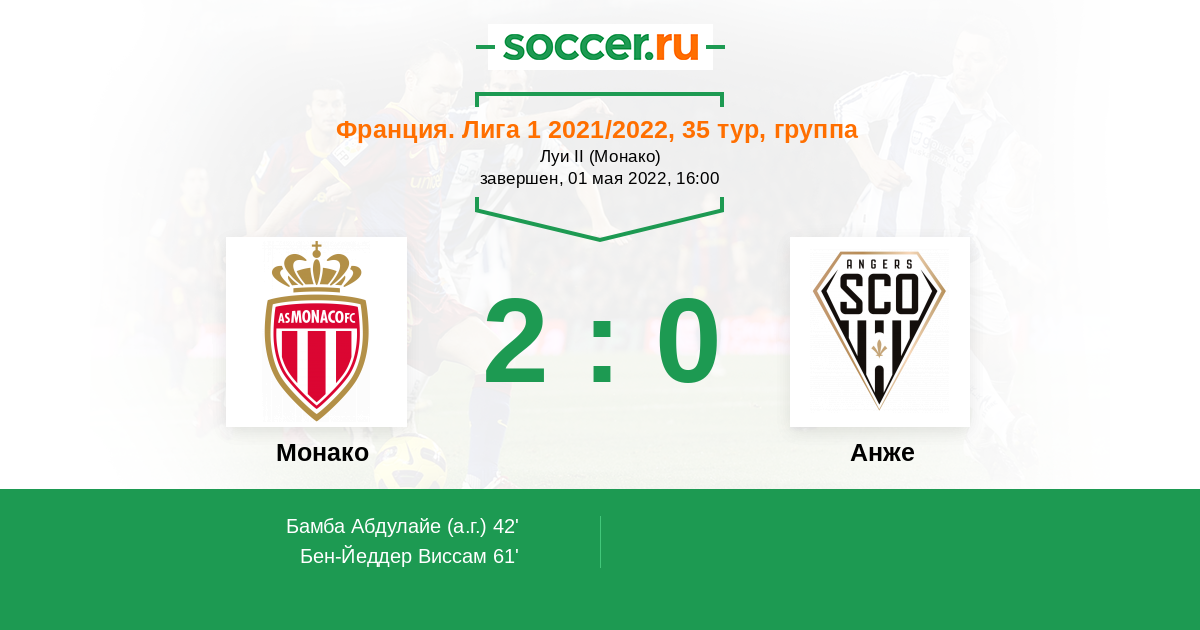 Франция. Лига 1 25.04.2021 Анже Логотип футбольный клуб Анже 0:1 Логотип футбольный клуб Монако Монако