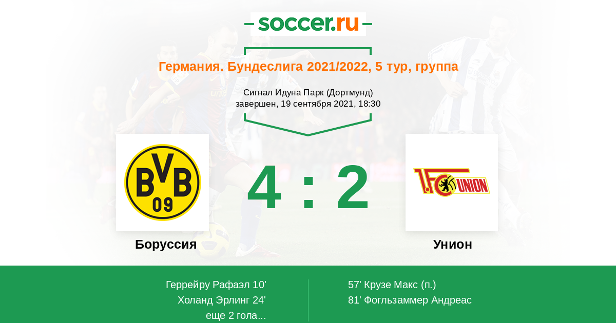 Почему такой прогноз? Боруссия, проводит этот сезон как всегда уверенно, к тому же в составе дортмундцев играет лучший молодой нападающий в мире. Унион же в этом сезоне не показывает каких-то серьёзных результатов, и вряд ли сумеет навязать сопротивление хозяевам.