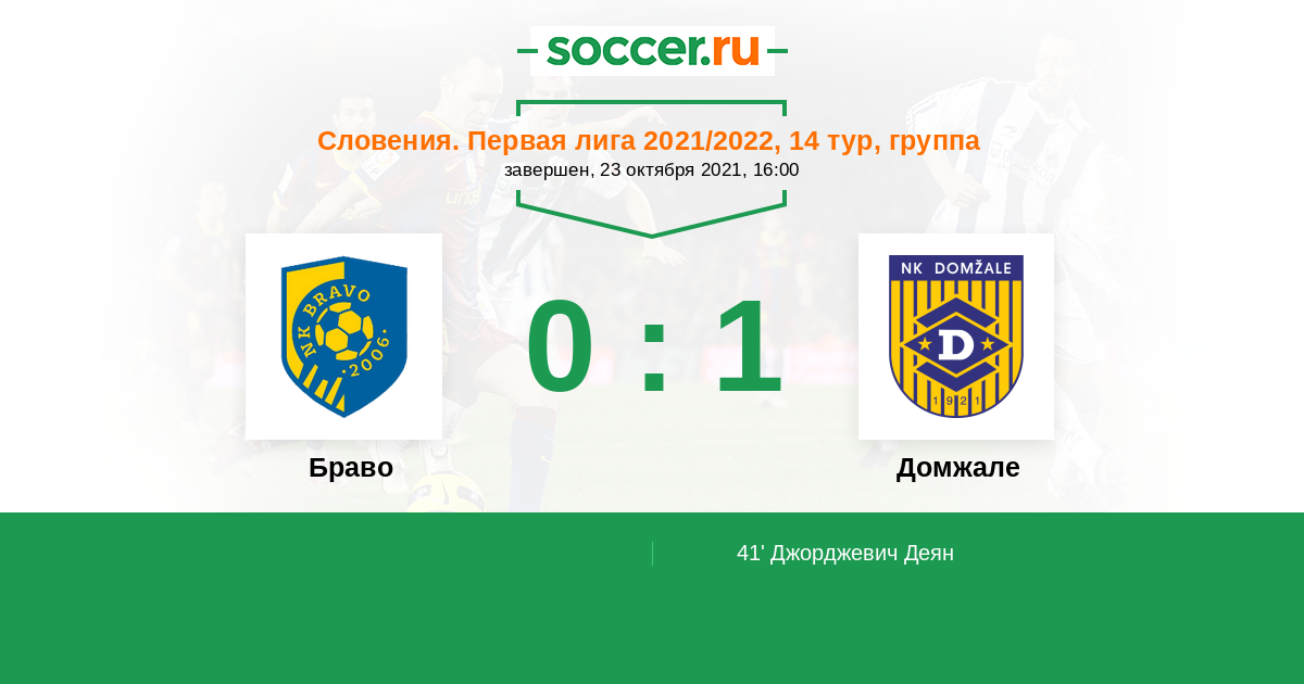 Словения. Первая Лига 14.08.2021 Домжале Логотип футбольный клуб Домжале 0:2 Логотип футбольный клуб Браво (Любляна) Браво