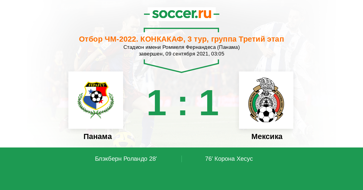 Отбор ЧМ. КОНКАКАФ 03.02.2022 Мексика Логотип Мексика 1:0 Логотип Панама Панама