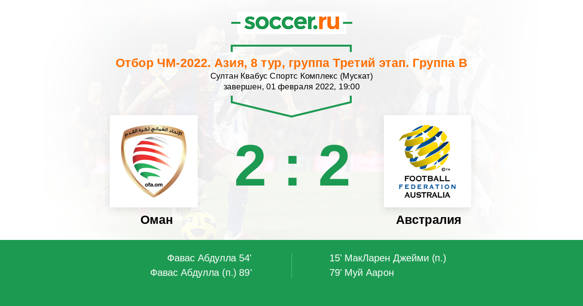 В этой игре я буду делать свою ставку на то, что сборная Омана на своём поле не сможет набрать три очка против сборной команды Австралии и тб 2,5 Австралийцы меньше пропустили и больше забили!