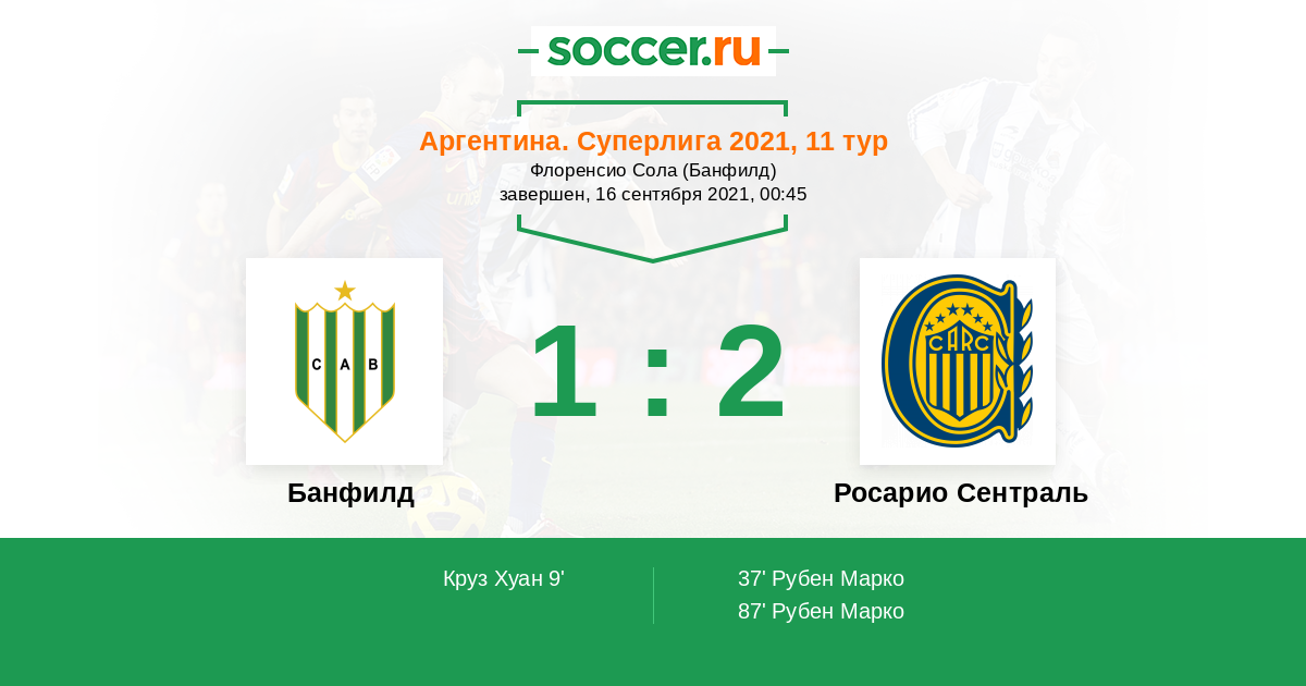 Аргентина. Суперлига 11.04.2021 Росарио Сентраль Логотип футбольный клуб Росарио Сентраль 3:1 Логотип футбольный клуб Банфилд Банфилд