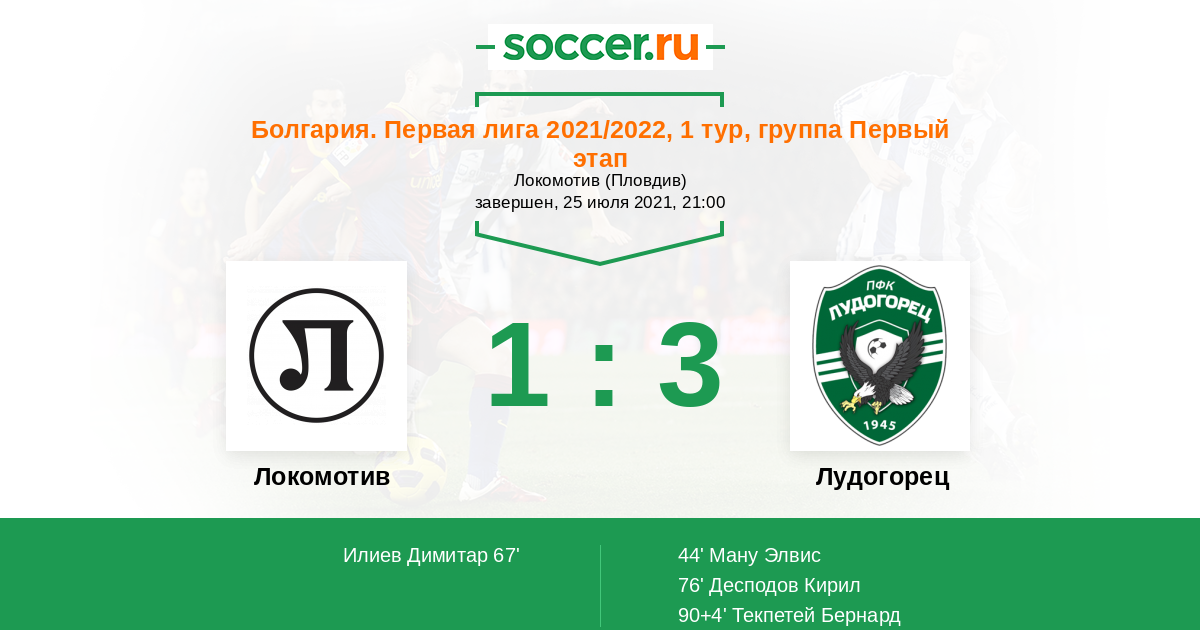 Болгария. Первая лига 04.08.2019 Локомотив Логотип футбольный клуб Локомотив (Пловдив) 1:1 Логотип футбольный клуб Лудогорец (Разград) Лудогорец